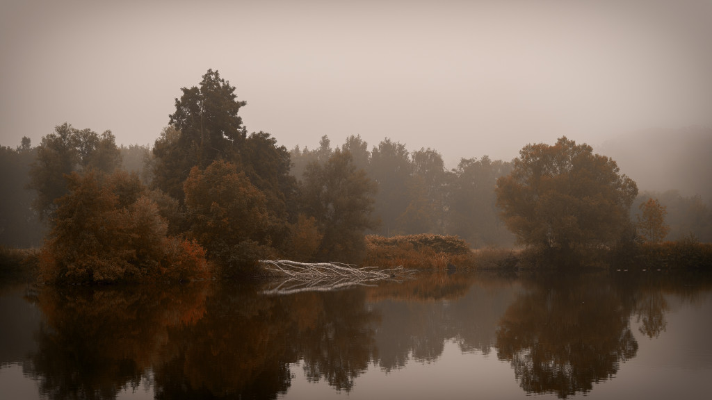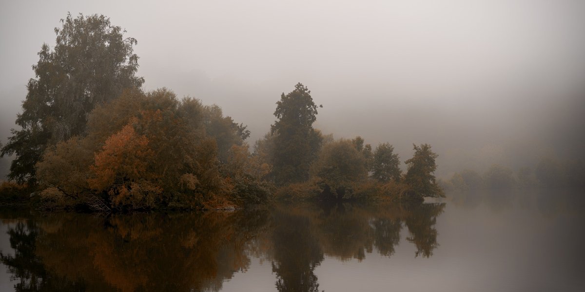 Herbstliche Bäume im Nebel. knieb.es/1d25