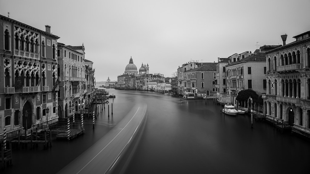 Langzeitbelichtung des Canal Grande mit Blick auf Santa Maria della Salute. knieb.es/174d
